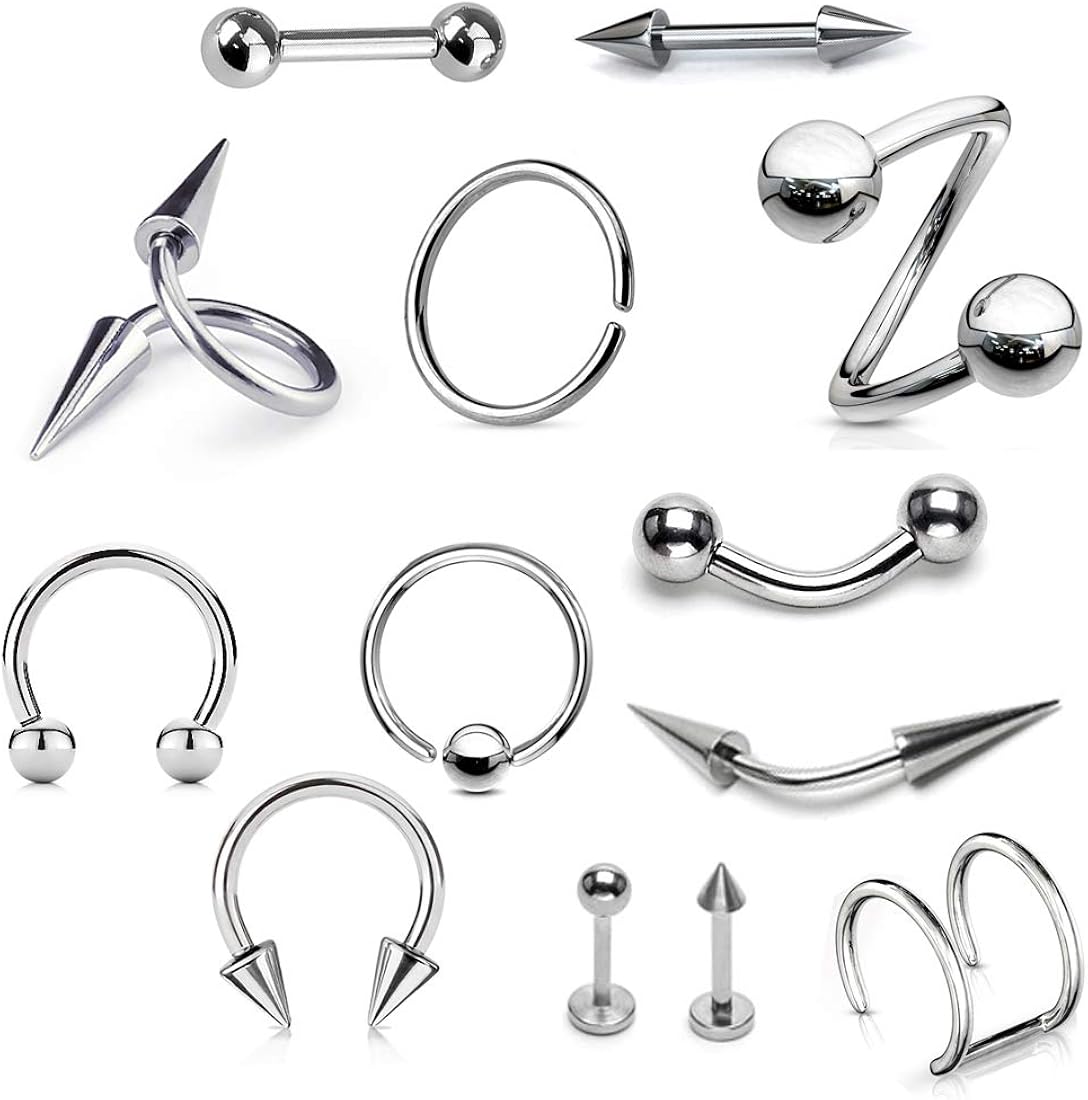 High-quality surgical steel body piercing jewelry designed for durability, comfort, and everyday wear. Perfect for ear, nose, eyebrow, lip, and belly piercings. Made from corrosion-resistant surgical steel that is safe for most skin types.
